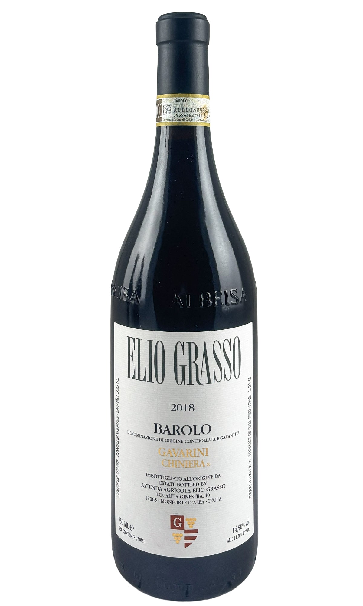 "The Gavarini Chiniera vineyard is shaped like an amphitheater with thick forests at the back (which protects from cold air currents) and sandy chalk soil at 380 meters in elevation. This is a special site, and the Elio Grasso 2018 Barolo Gavarini Chiniera is always one of Grasso's most easily recognized wines. This vintage is exceptionally bright and vibrant with lifted tones of cherry, plum, blue flower and sweet blood orange. Those primary notes are framed by sensations of dusty white mineral. This mid-weight wine exhibits the deep elegance that was achieved in this vintage. Production is 12,000 bottles." -Monica Larner