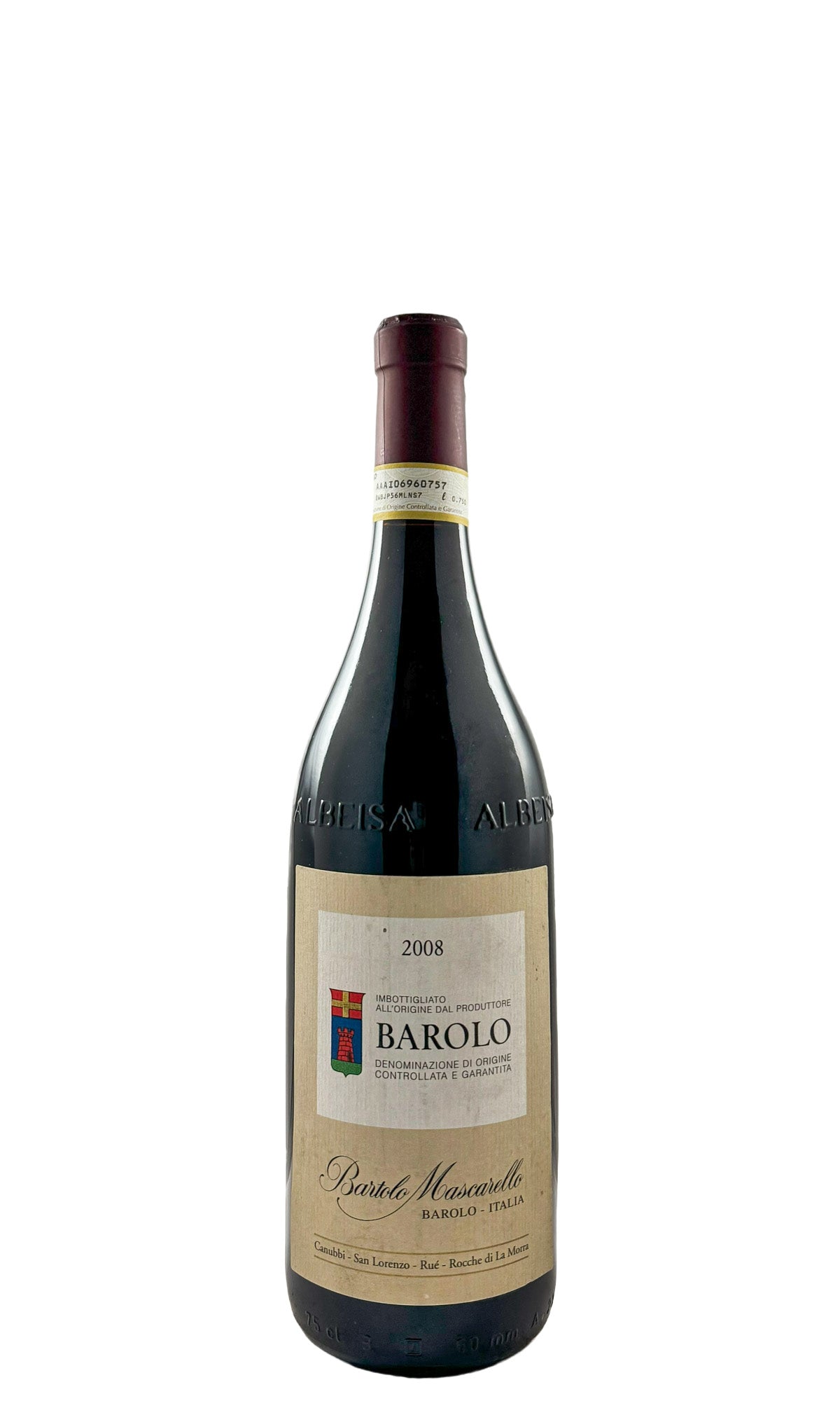 There is no single-vineyard Mascarello Barolo—there never has been. Bartolo himself believed that blending all his parcels together produced a more complete wine than any one site alone, and his daughter Maria Teresa continues that tradition. Fruit from Cannubi, San Lorenzo, Rué, and Rocche dell'Annunziata is cofermented in old cement and wooden vats for thirty to fifty days, then aged three years in large 2,500-liter Slavonian oak botti. No temperature control, no small barriques, no concessions to fashion. The 2008 was a classic, challenging Piedmont vintage: spring storms, disease pressure, and a late ripening cycle rescued by warm, dry weather from mid-August onward. The resulting wine is all elegance and structure—red cherry, dried rose, tar, and iron—with the tannins and acidity to evolve for decades. Only about twelve hundred and fifty cases made. The purest expression of traditional Barolo still in production.