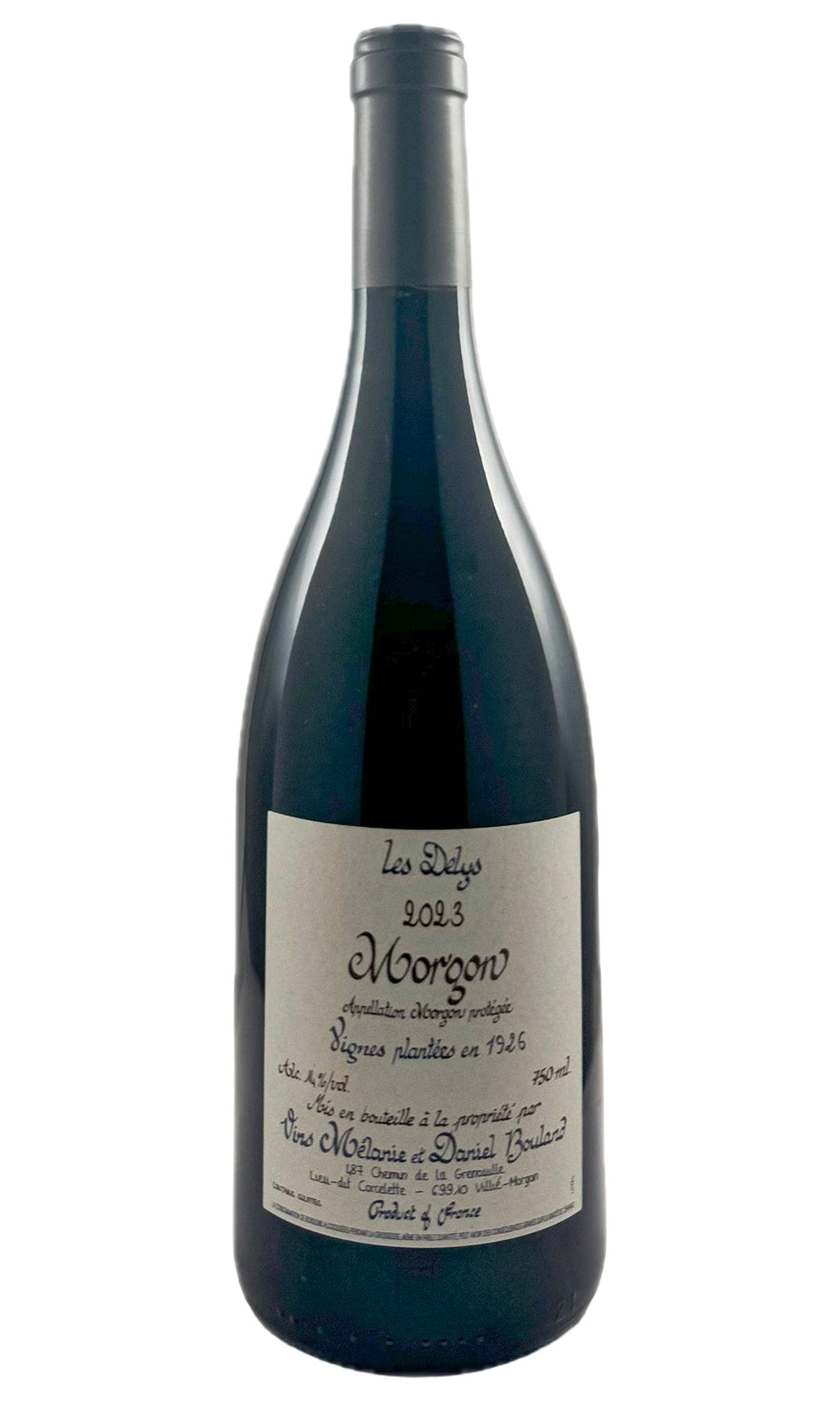 "The 2023 Morgon Les Délys Vignes plantées en 1926, aged in foudre, offers a full-bodied profile with a seamless integration of tannic structure and concentrated fruit. On the palate, notes of chocolate spice, licorice, blueberry and ginger unfold smoothly, voluminously coating the mouth with a rich, almost waxy texture. The smooth-coated tannins aptly stabilize the wine in perfect proportion to the wine's body. Herbaceous, mentholated accents emerge, adding freshness and complexity to the wine’s lingering finish." -Kenna Wells