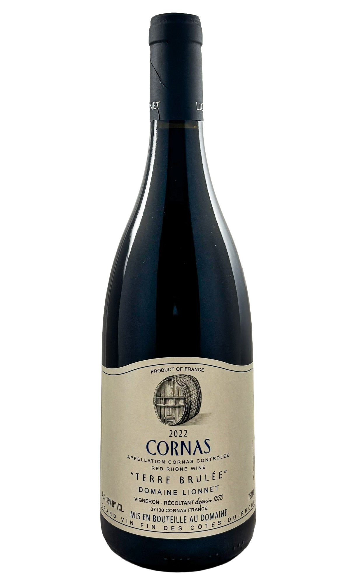 After the élevage, the wines are assembled to make a single cuvée known as “Terre Brulée”. The bottling takes place after two winters have passed. All work is done by gravity. The wine is never fined nor is it filtered. There is a single bottling of the entire lot. We have been buying the wines of the Domaine Lionnet since the 2004 vintage. Their Cornas is a true classic: firm, sturdy, rigorously tannic, explosively aromatic, complete and satisfying. We are indebted to Bernard Levet for his wise counsel in leading us to the doorstep of the formidable Domaine Lionnet in Cornas. We have the privilege of purchasing 24,00 bottles and 90 magnums per vintage.