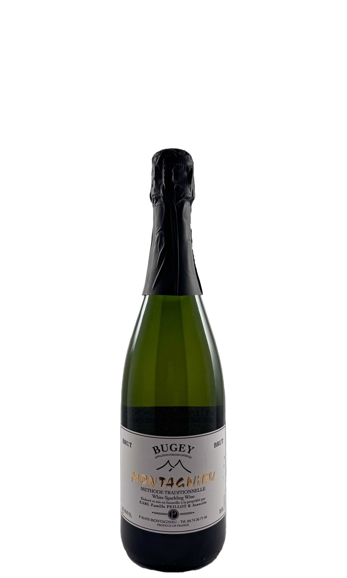 50% Mondeuse/50% Altesse + Chardonnay. Though not vintage-dated, Peillot's Brut is always single-vintage, methode champenoise wine. Most cru Montagnieu sparkling is Chardonnay-dominant; Peillot emphasizes local varieties Altesse & Mondeuse. Average vine age is around 30 years, with some plots of Altesse and Mondeuse up to 60 years old. Much of the Altesse is planted on rocky limestone scree on a steep slope right by the village of Montagnieu, trained individually in local traditional gobelet sur échalas style; the Mondeuse comes mainly from flatter, sandier, red clay soils downslope from town, close to the Rhône River. The different varieties are harvested by hand and vinified separately, parcel by parcel. The clusters are direct-pressed and spontaneously fermented in tank; the blending takes place in late winter. The blended wine is bottled with a liqueur di tirage and finishes fermentation in the bottle; it is disgorged and finished with a 6-gram dosage. Bugey is the AOC and Montagnieu is the village and cru.